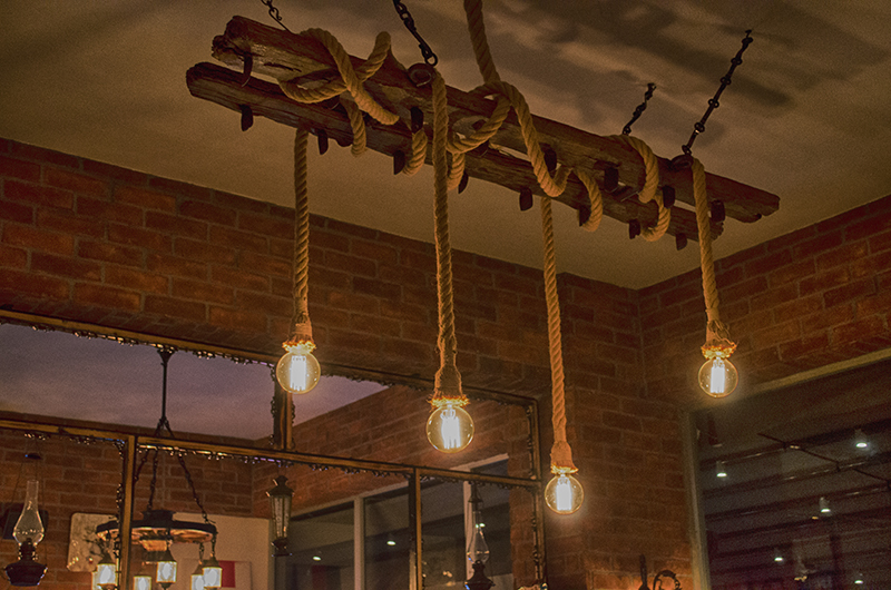Cafe barının iki yanındaki duvarlarda kullanılan Eyfel Aplik modelimiz eski tip gaz lambalarını andıran yapısıyla mekan ruhuna tam bir katkı sağladır. İçerisinde yer alan rustik tip ampullerde tasarımı bütünledi.